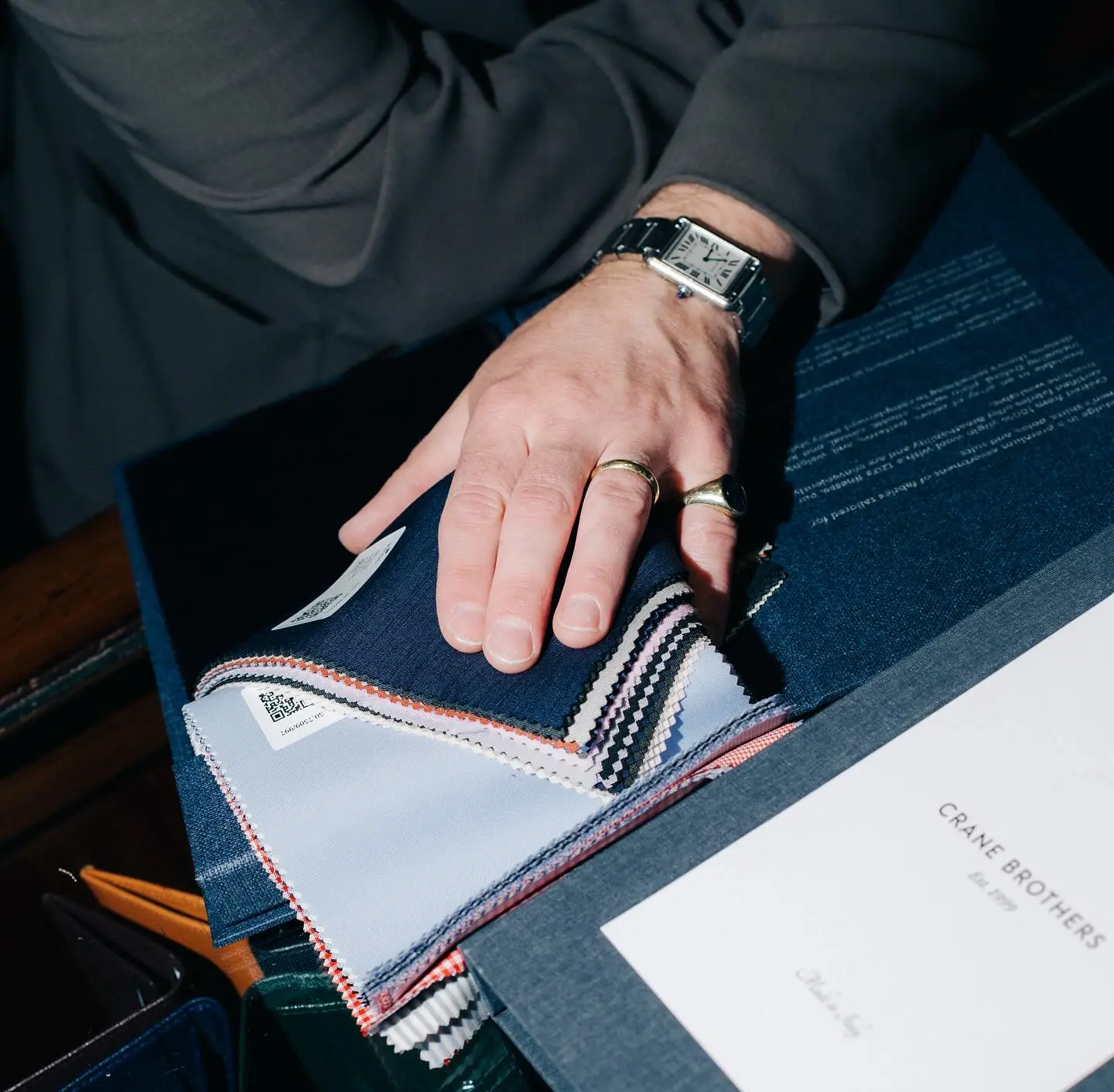 Contemporary tailoring, Made in Italy. Cut, sewn, and finished to your exact specifications in our Italian workshops, then hand-finished in our Auckland workroom. We guide you through fabric selection and finishing details—from lapel styles to button choices to lining. Allow 20–25 working days depending on fabric selection. Every suit you commission represents over 25 years of knowledge about cut, construction, and what makes a garment last.